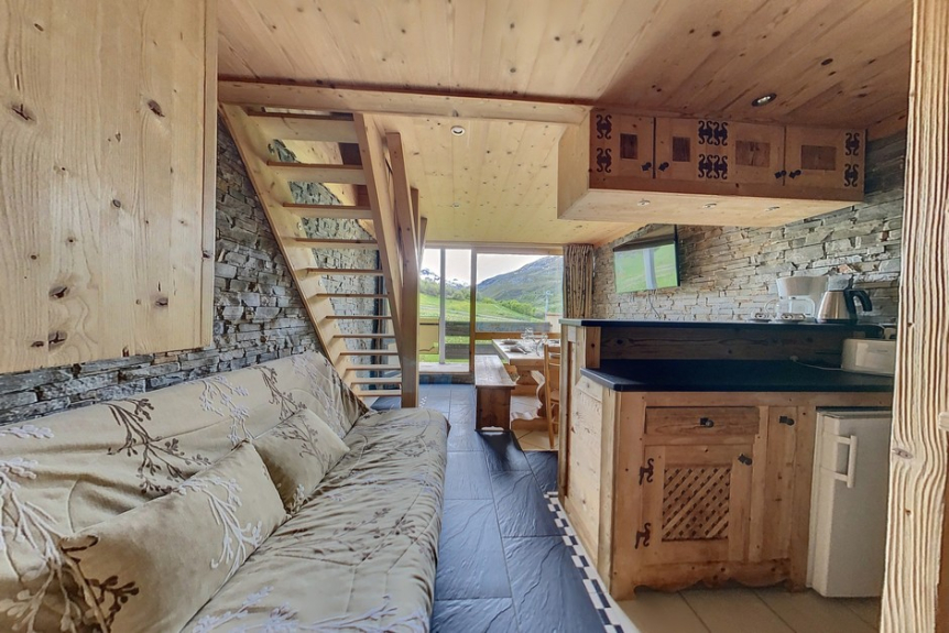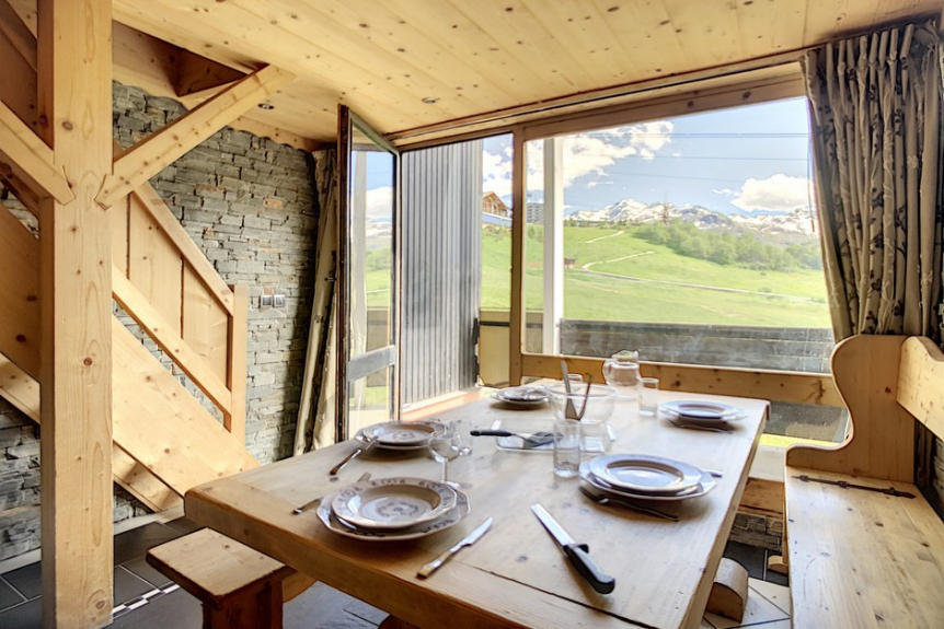 Superbe appartement entièrement rénové avec 3 pièces de 45 m² pour 6 personnes. Il est situé en Rez de Neige avec un balcon orienté Sud. Entrée 3.