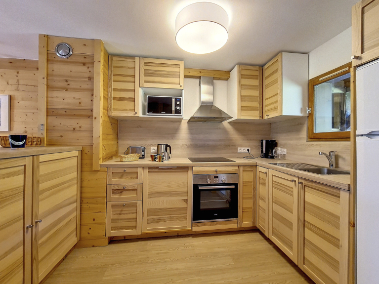 Cuisine avec 4 plaques, réfrigérateur, four, lave-vaisselle, bouilloire , grille-pain, cafetière électrique