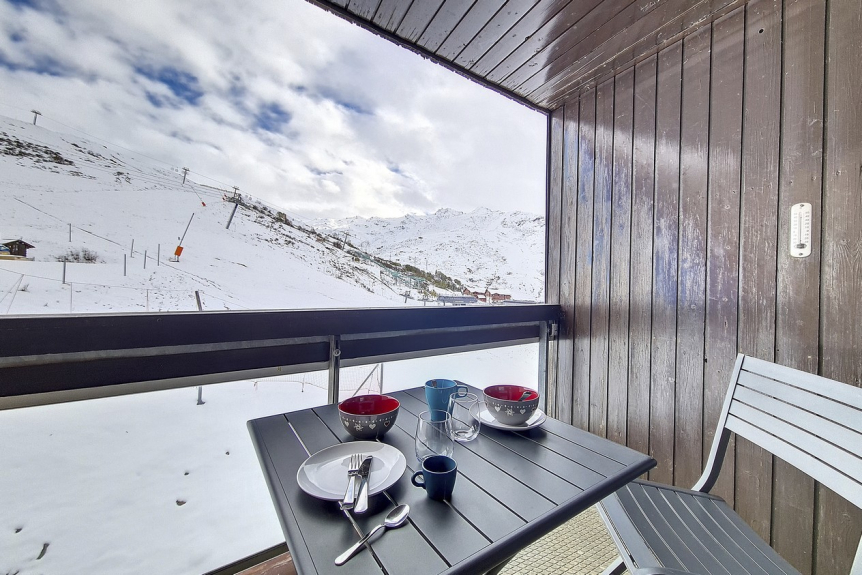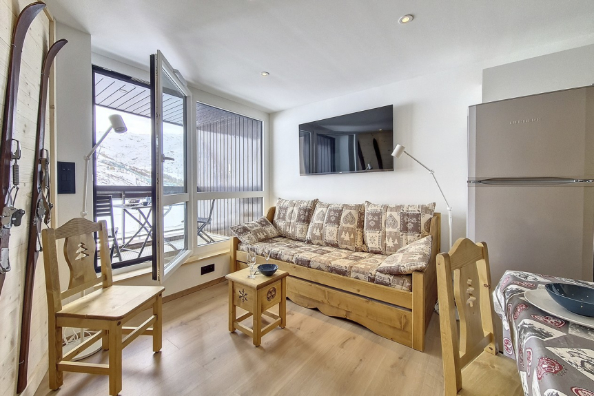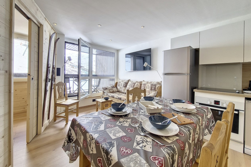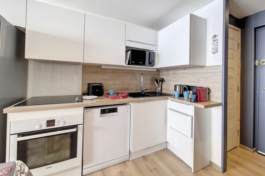 Appartement deux pièces de 28.50 m² équipé pour 4 personnes, situé au 4ème étage avec un balcon exposé Sud-Est.