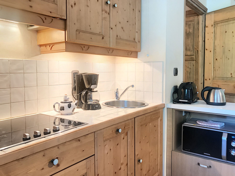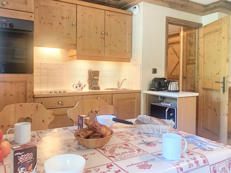 Cuisine : 4 plaques vitrocéramique, four,four micro-ondes,réfrigérateur et lave-vaisselle, grille-pain, bouilloire et cafetière électrique