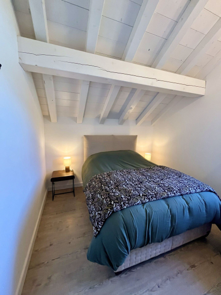Au rez de chaussée du chalet, vous disposez d'une chambre avec lit double 140 cm avec un tiroir rangement , une penderie et 2 tables de chevet, d'une chambre dortoir avec 2 x 2 lits superposés de 90 cm (Les couchages en hauteur ne conviennent pas aux enfants de moins de 6 ans) avec un coffre pour la télévision. D'une salle d?eau avec douche et une vasque - wc séparé