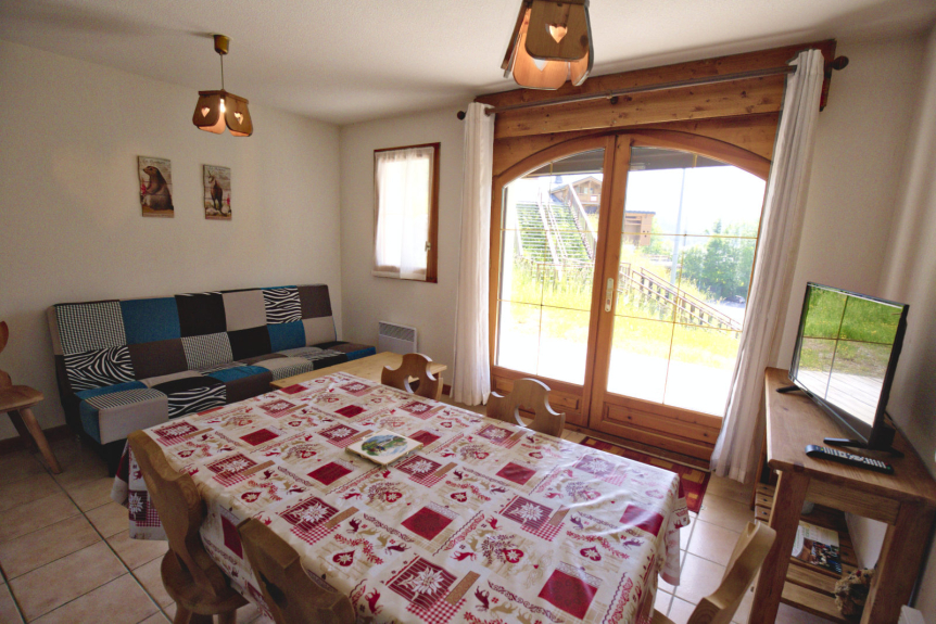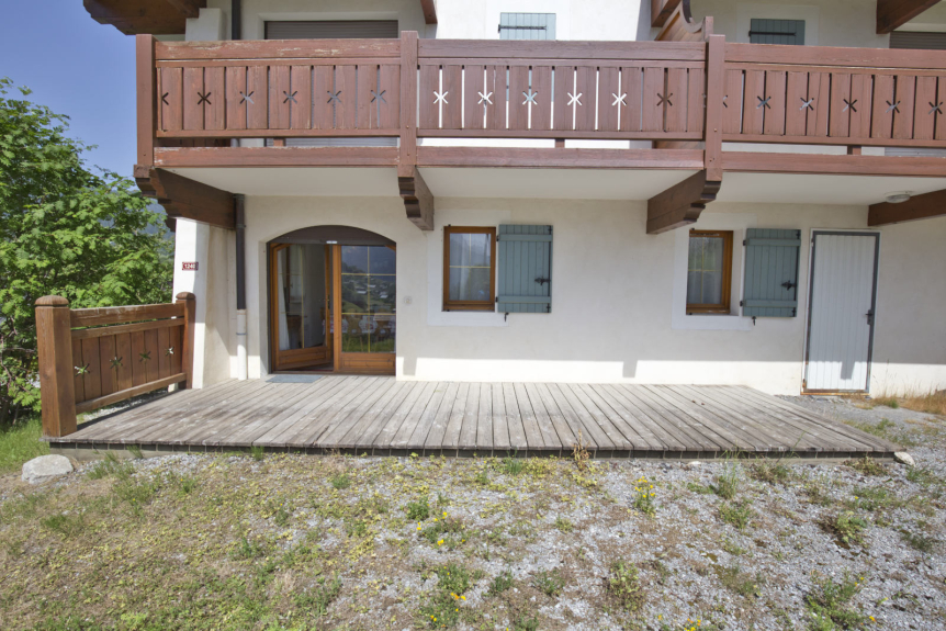 Appartement au pied des pistes de l'Espace Diamant, d'une surface de 40m² en rez de jardin avec une terrasse ouest offrant une belle vue sur le Mont Charvin.
