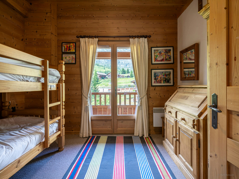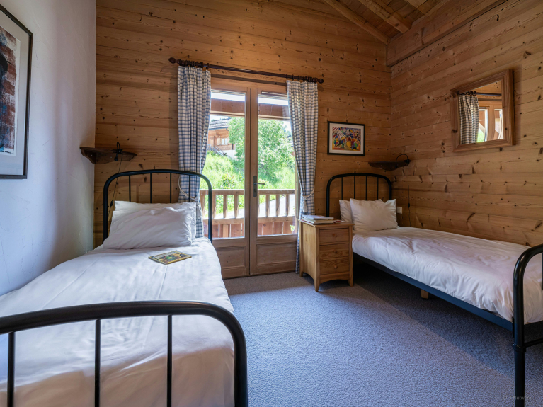 Avec deux chambres doubles, une à deux lits et une autre avec lits superposés, le chalet offre un cadre idéal pour deux familles.