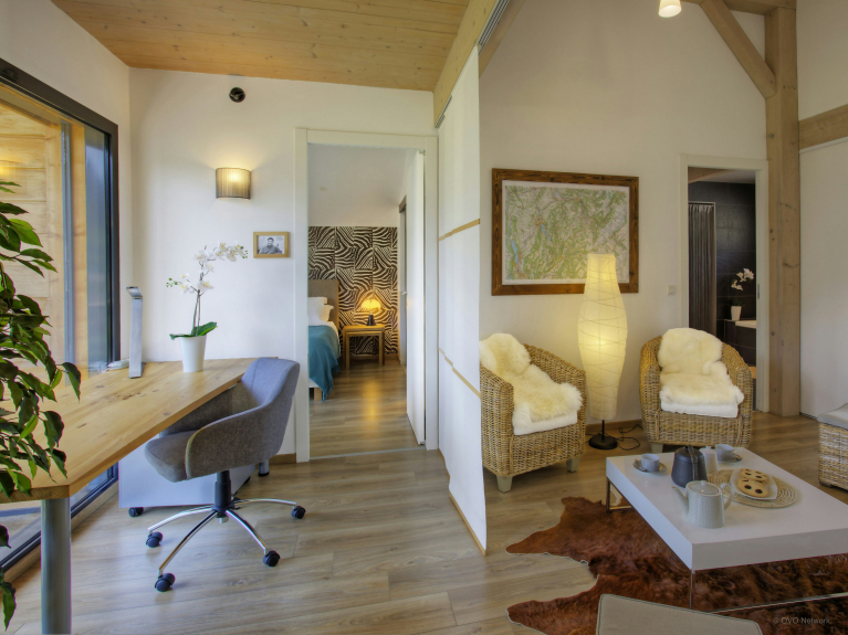 La propriété dispose également de grands dressings, d’un cellier, d’un espace bureau, de deux coins télé et d’un local où entreposer votre matériel (skis, vélos ou VTT). De quoi passer des vacances agréables comme à la maison, et sans jamais se gêner !