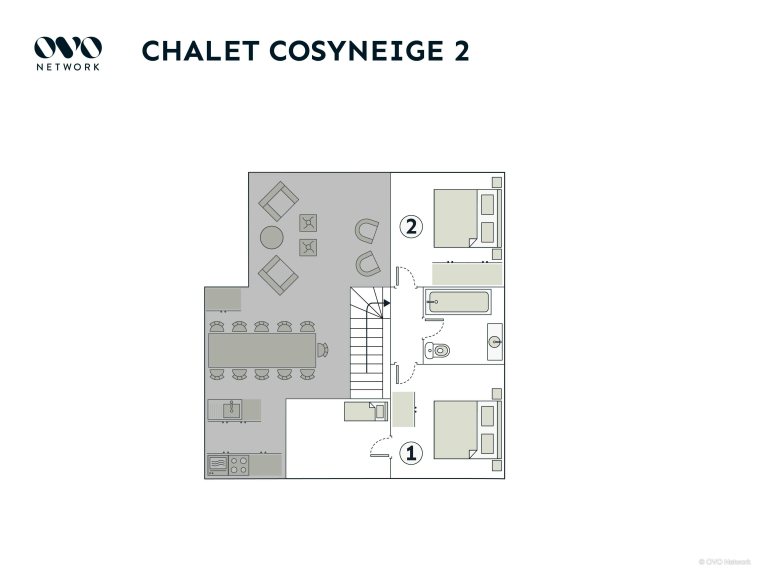 Cette location est un chalet mitoyen. Nous adorons la situation calme en lisière de forêt ainsi que le petit ruisseau qui court le long du chalet côté terrasse. La pelouse du très joli jardin est parfaite pour prendre le soleil, et après une journée trépidante, vous apprécierez vous détendre dans le jacuzzi. Nous aimons également la grande terrasse qui fait presque le tour complet du chalet et sur laquelle vous pourrez lire et prendre vos repas.