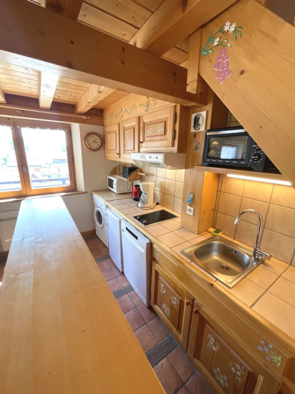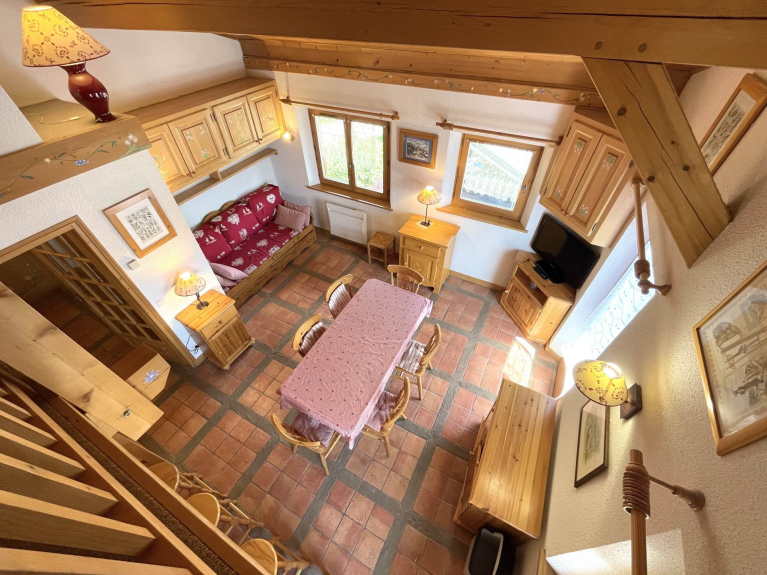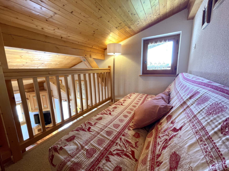 Duplex au coeur d'un village typique du Val d'Arly avec une surface de 34m² et 17m² inférieur à 1.80m. Au deuxième étage d'une résidence offrant une très belle vue sur le village et le Mont Charvin, vous apprécierez son balcon SUD/EST.