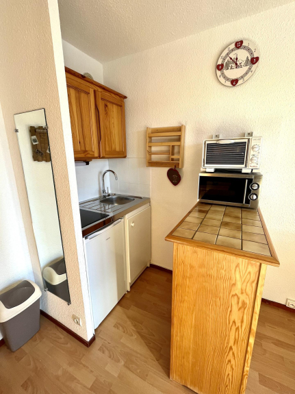 NOTRE AVIS : Studio fonctionnel, bien agencé et décoré dans un esprit montagnard, avec un excellent ensoleillement.