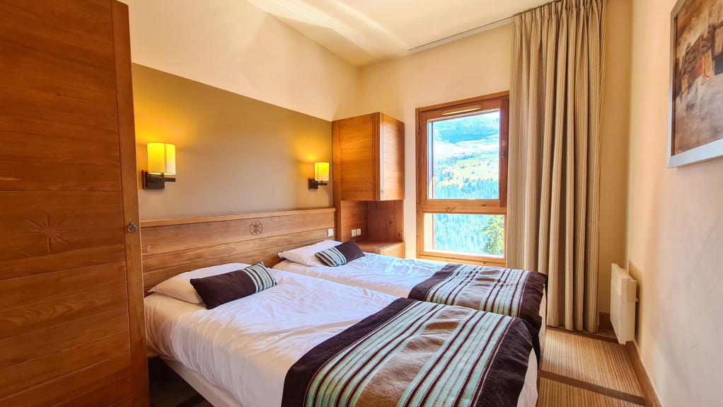 Résidence de tourisme 5 étoiles située au pied des pistes et à environ 400 mètres des commerces. Emplacements de parking couverts. Ascenseurs. Casiers à skis.