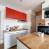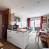 Cuisine intégrée avec 4 plaques, micro-onde, réfrigérateur, hotte, lave vaisselle.