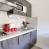 Cuisine incorporée 2 plaques, réfrigérateur, micro-ondes, lave-vaisselle, grille-pain, cafetière Senseo et bouilloire.