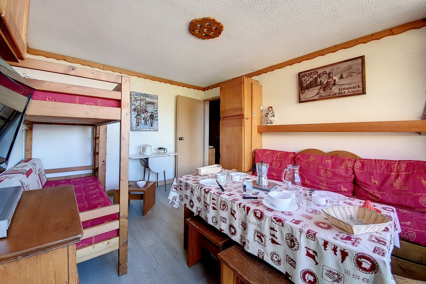 Séjour : 1 banquette simple, 1 banquette gigogne relevable, 2 lits superposés Equipé d'une télévision avec un lecteur DVD.