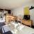Cuisine : réfrigérateur, four, lave vaisselle, 2 plaques électriques, cafetière et bouilloire électrique, grille-pain.