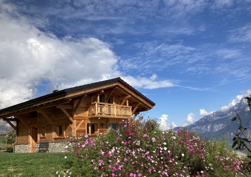 Chalet récent (1ère mise en location été 2022) classé 3 étoiles avec vue exceptionnelle et panoramique sur la chaine du Mont-Blanc, la chaine des Fiz et la chaine des Aravis.
