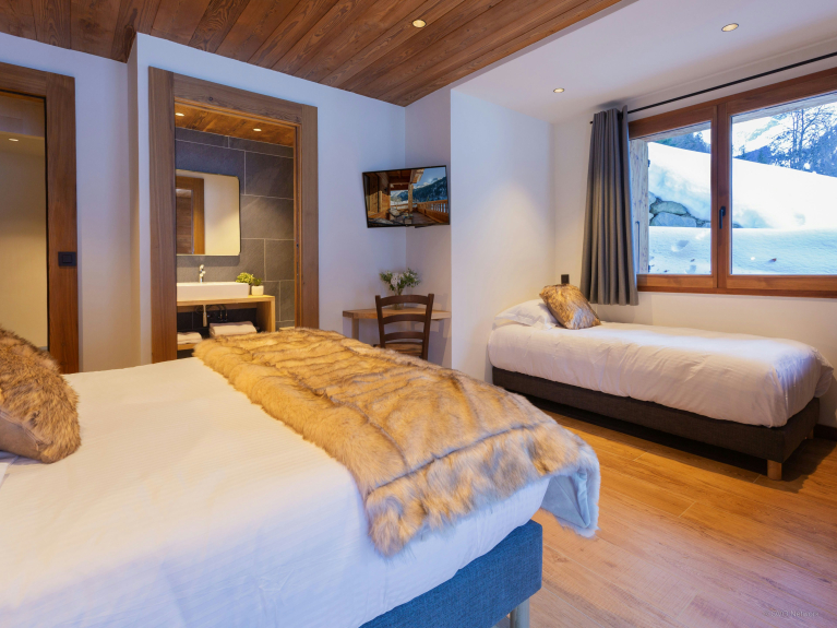 Note : le chalet Angelia a été classé 5 étoiles pour une capacité de 12 personnes. La capacité totale de la propriété est cependant de 14 personnes.