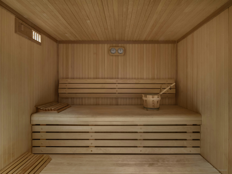 Nous aimons particulièrement la salle de sport, qui comprend un sauna et sa propre salle de douche, et le jacuzzi intérieur surplombant le jardin.