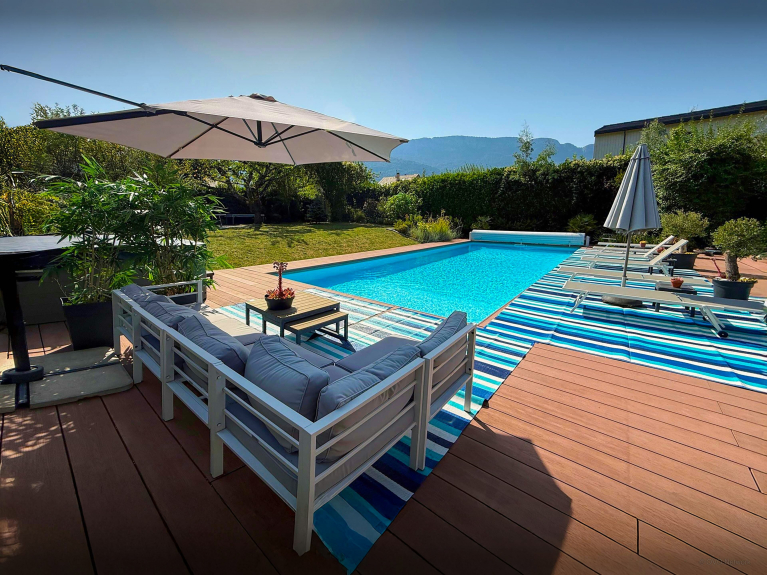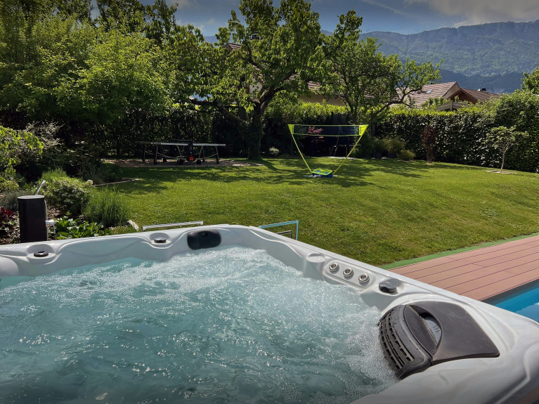 Avec son bain nordique, son sauna et sa piscine d’extérieur (accessible de mai à octobre), c’est le logement idéal pour un séjour luxueux à la montagne.
