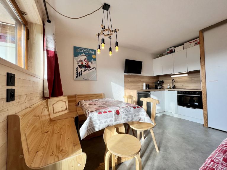 Dans le village de Notre Dame de Bellecombe, appartement de 27m² pour 4 voyageurs. Situé en rez de jardin, il bénéficie d'une terrasse sud- ouest avec vue sur la forêt et les montagnes environnantes.