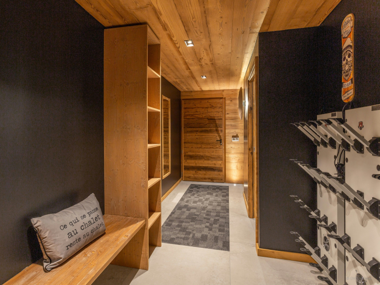 Local à skis et cheminée