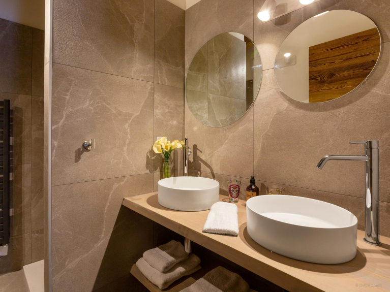 Une des chambres doubles du deuxième étage compte un lit d’appoint supplémentaire. Les adultes se partageront trois chambres doubles : une au rez-de-chaussée et deux au deuxième étage. Ces dernières incluent chacune leur propre salle de douche et un balcon privé.