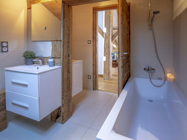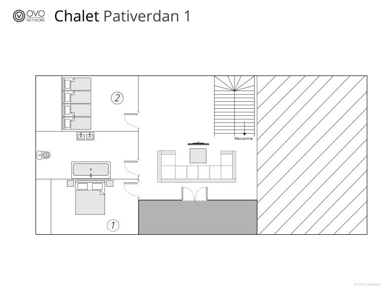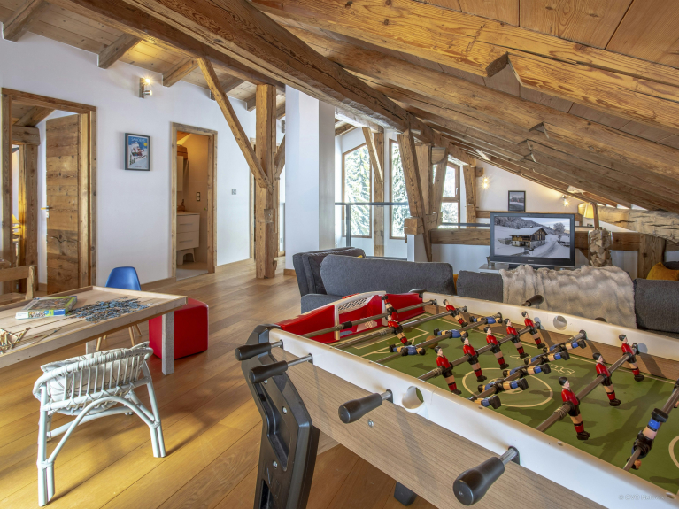 Le chalet Pativerdan dispose de quatre chambres - deux doubles à l'étage inférieur, et à l'étage supérieur vous trouverez une chambre double et une autre qui peut accueillir quatre personnes. Ces deux chambres partagent une salle de bains et les lits peuvent être disposés comme des lits doubles ou des lits jumeaux, ce qui permet de s'adapter à toutes les situations. Il y a également une salle de jeux avec une télévision sur la mezzanine, ce qui en fait un endroit idéal pour les familles. Un canapé-lit se trouve également dans la salle de jeux, si vous avez besoin d'un couchage supplémentaire.