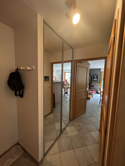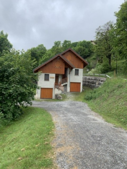 Garage-local skis pour 1 véhicule et 1 place de stationnement devant le garage.