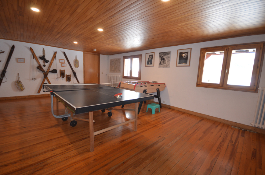 Un double salon/ salle à manger de 44 m² permet aux parents de profiter confortablement de moments conviviaux pendant que les enfants se retrouvent dans la salle de jeux de 31 m² (pingpong, babyfoot, jeux, bibliothèque...) La grande terrasse de 22m² permet de déjeuner en extérieur, été comme hiver et de se détendre sur les transats en profitant du superbe panorama sur le Janus et la barre des Ecrins.
