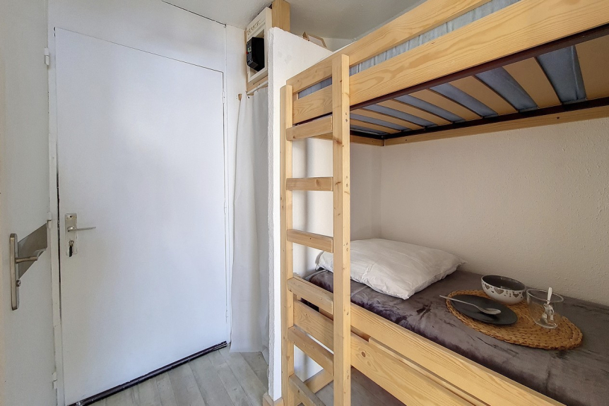 Studio de 20m² pour 4 personnes situé au 8ème étage avec ascenseur. Il a un balcon orienté Sud Est. Entrée n°1