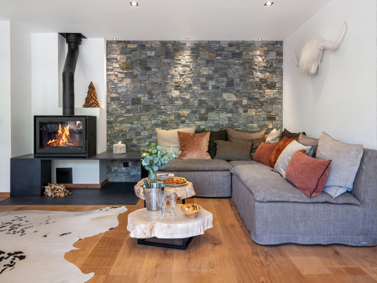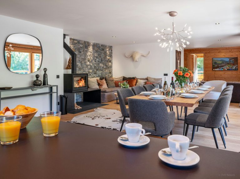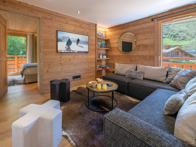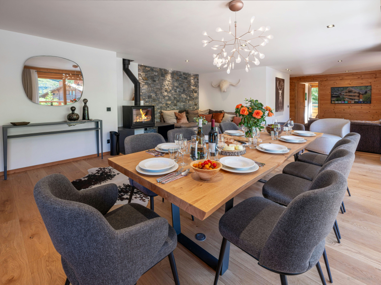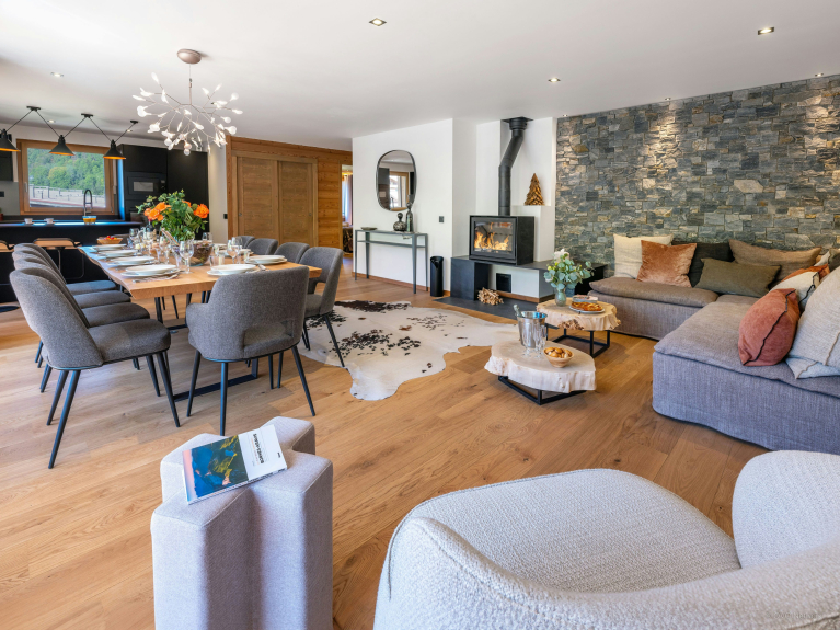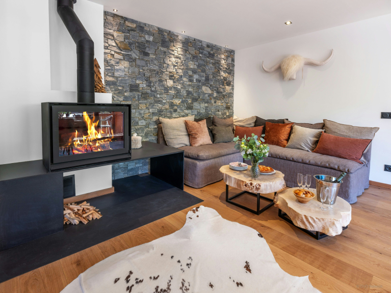 Tout l’appartement a été récemment rénové et doté d’équipements hauts de gamme. Vous y trouverez une cuisine ouverte entièrement équipée, une grande table à manger avec vue sur les pistes, et deux espaces conviviaux très confortables, autour du feu et de la télévision.