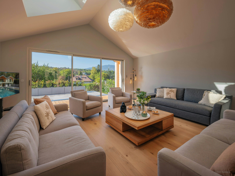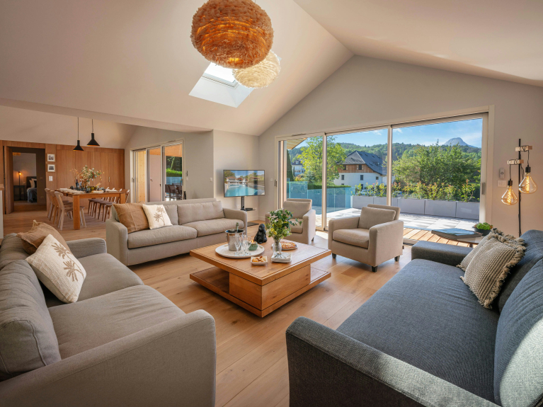 De par son emplacement privilégié, elle offre un accès facile au lac d’Annecy et à son parcours de golf, au charmant village de Talloires, et à la prodigieuse réserve naturelle du Roc de Chère. Le centre historique d’Annecy, à seulement 11km, peut être rejoint à vélo en longeant la rive du lac.