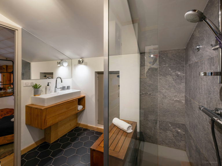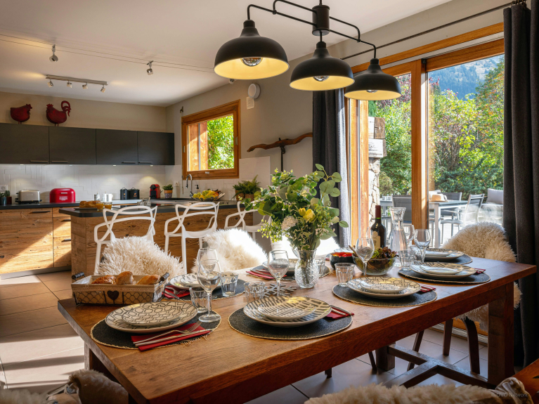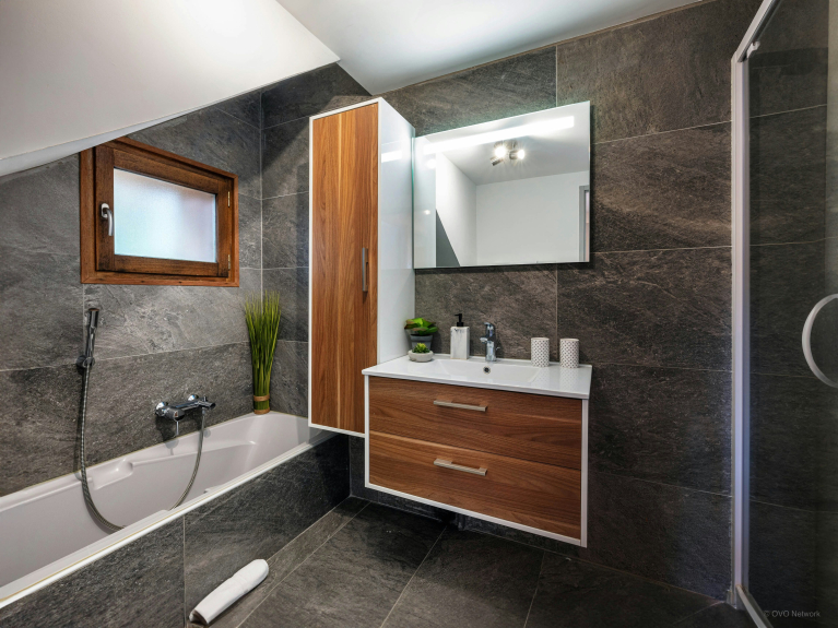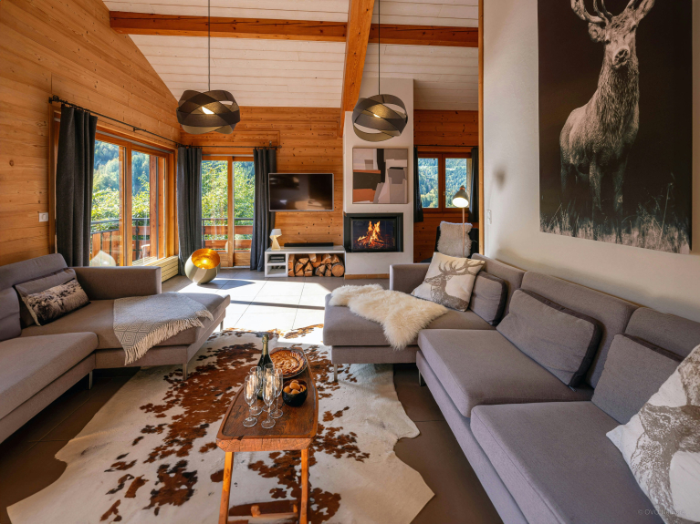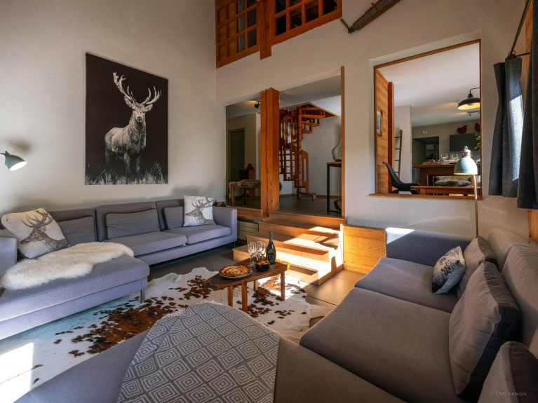 La propriété est aménagée sur 3 niveaux, avec 3 chambres et une salle de bains au rez-de-jardin, et 2 chambres et une salle de bains à l’étage supérieur. C’est un aménagement parfait pour deux familles qui souhaitent passer des vacances ensemble à la montagne. Chacune bénéficiera de son propre espace, mais tout le monde pourra se réunir lors des activités, des repas et des moments de détente.