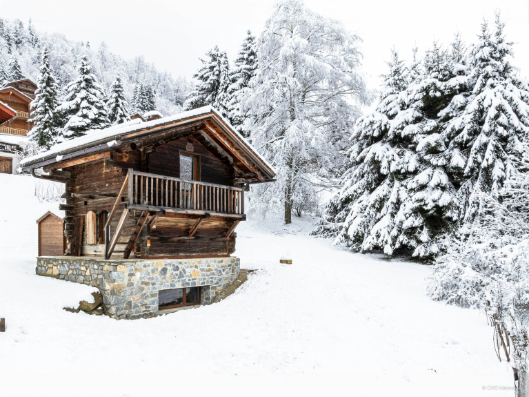 À l’arrière du chalet se trouve un local de rangement très fonctionnel, avec un sèche-chaussures chauffant et de l’espace pour abriter skis et vélos.