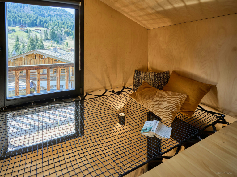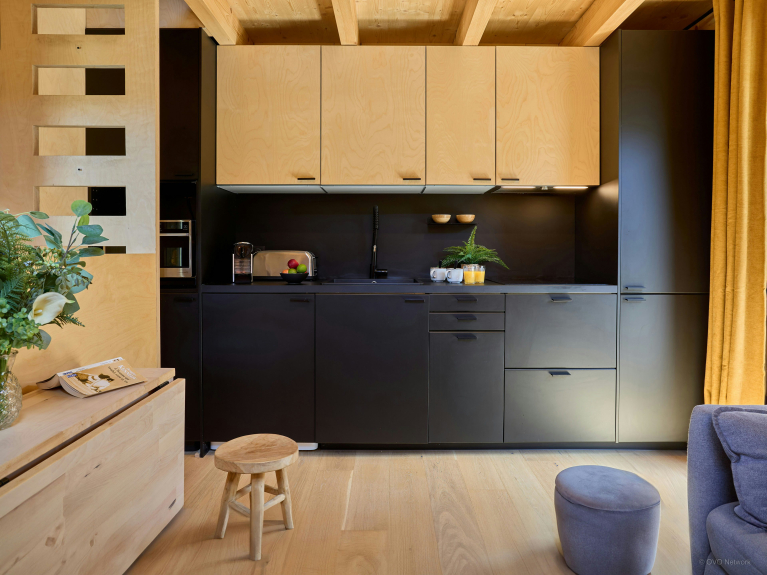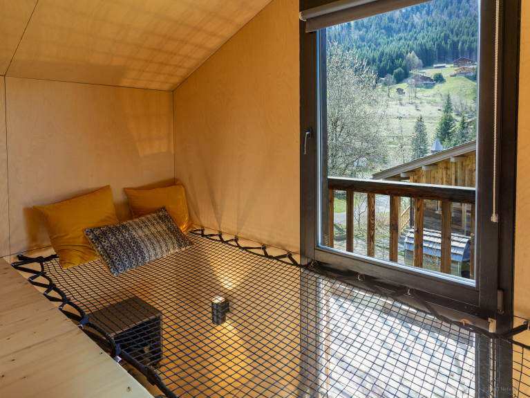 Le Chalet Sideflip n’est pas adapté aux jeunes enfants et ne propose par conséquent aucun équipement Cool for Kids. Remarque : l’accès à la chambre aménagée sur la mezzanine se fait par une échelle non sécurisée.