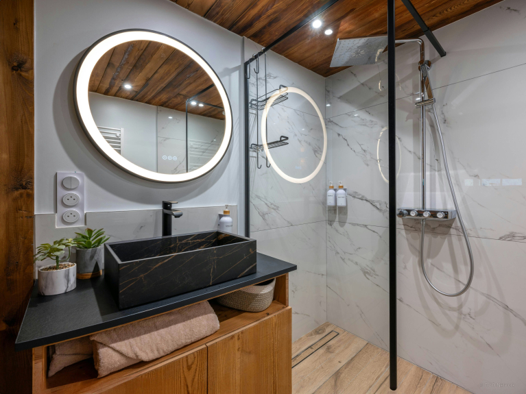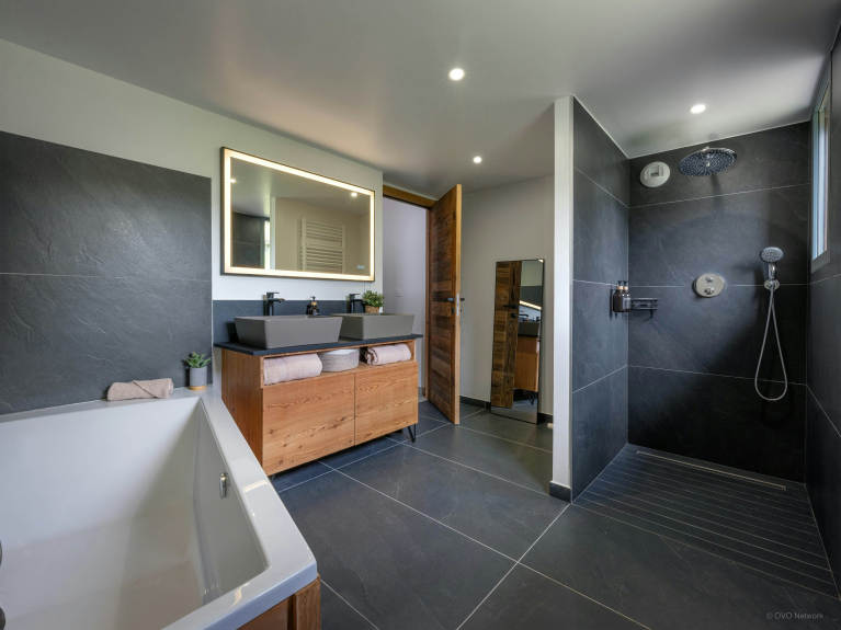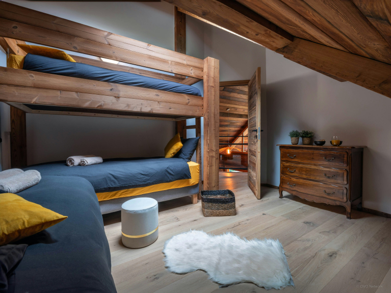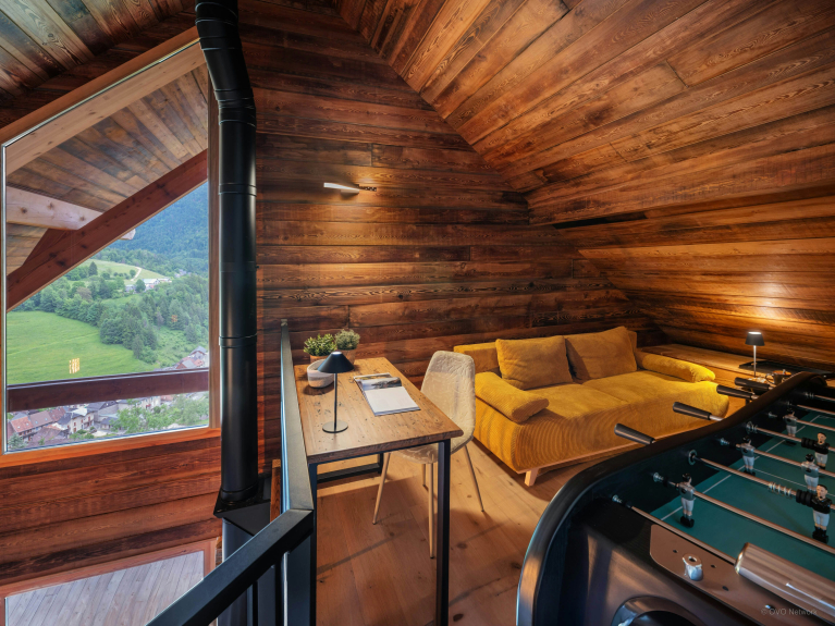 Les enfants de tous les âges aimeront la mezzanine, qui compte une chambre pour trois avec un lit simple et un lit superposé, ainsi qu’une salle de jeux avec télévision, babyfoot et espace bureau. Le Chalet Emeraude des Alpes compote plusieurs volées de marches, ce qui peut nécessiter un accompagnement pour les personnes à mobilité réduite, et la pente du jardin requiert une attention particulière pour les jeunes enfants. Une place de stationnement privée est disponible à l’arrière de la propriété.