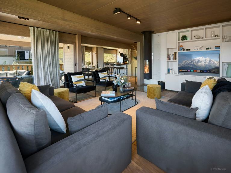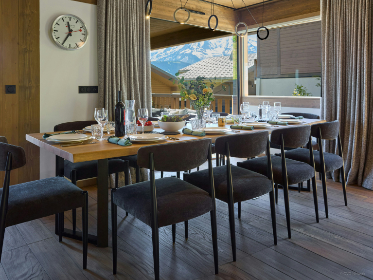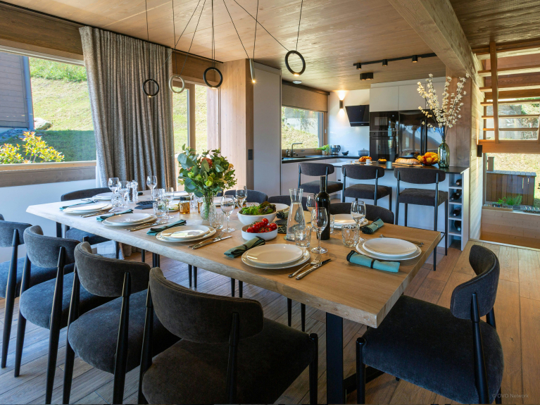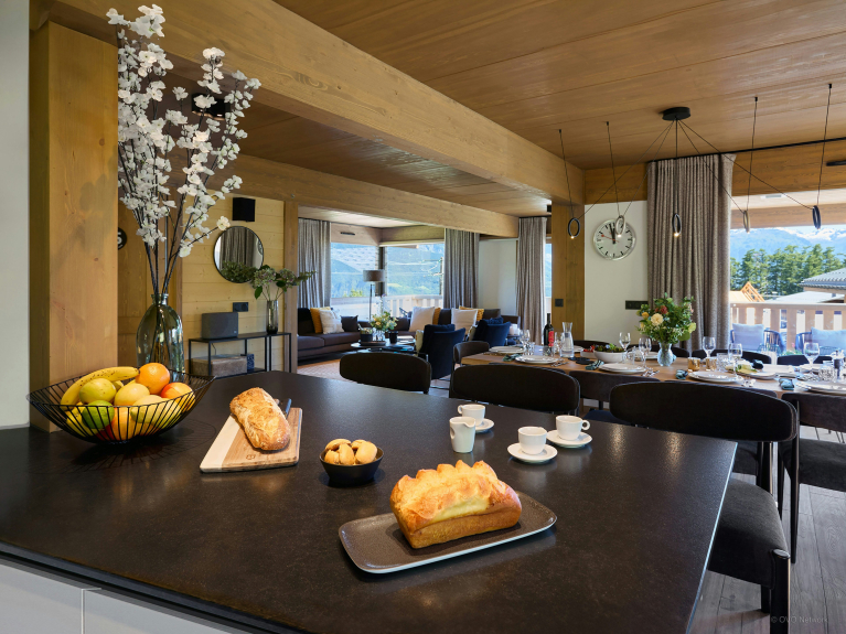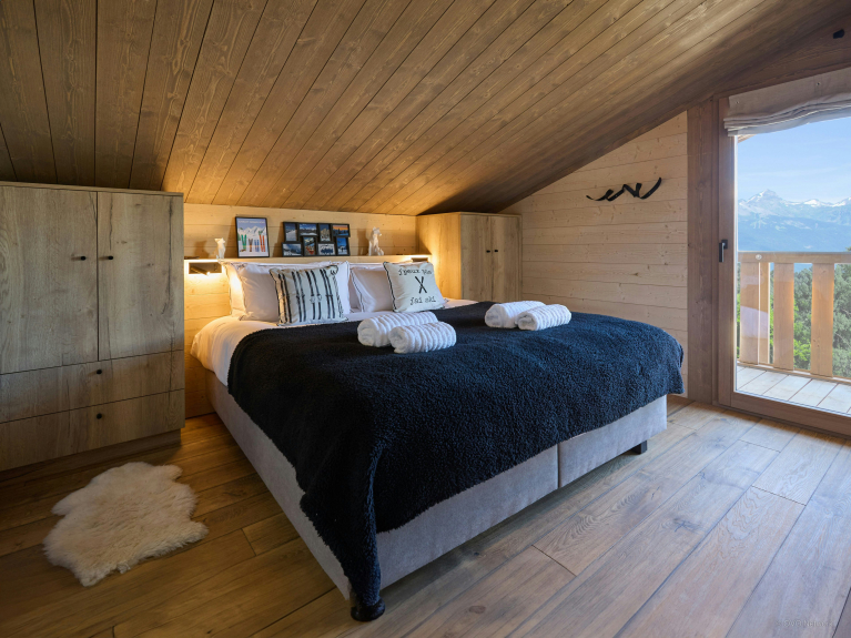 Elle compte six chambres à coucher, chacune équipée d’une salle d’eau attenante avec toilettes. Quatre chambres doubles bénéficient d’un accès direct à un balcon, où vous pourrez prendre une grande bouffée d’air matinale. Le chalet propose également une cinquième chambre double ainsi qu’un dortoir conçu pour deux enfants.
