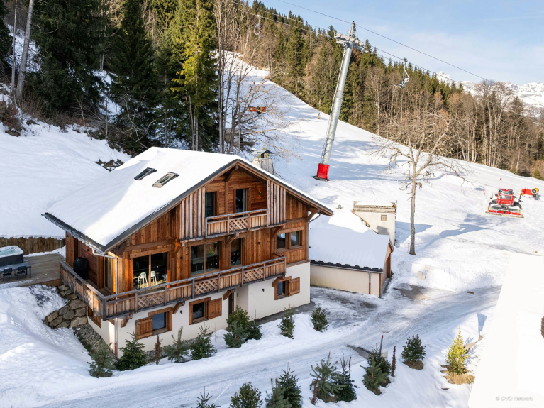 Bâti sur une piste de ski surplombant le paisible village de Saint-Nicolas-de-Véroce, c’est le refuge parfait pour une famille ou un groupe d’amis qui souhaite profiter pleinement des sports de glisse. Vous apprécierez néanmoins une atmosphère de sérénité en fin de journée. Il faut compter seulement 150 m jusqu'à la remontée mécanique qui relie Megève et Saint-Gervais. Toutefois, lorsque les conditions d’enneigement sont bonnes, vous pourrez quitter le chalet directement à skis.