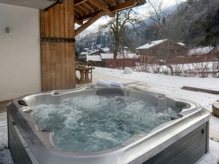 L’espace extérieur est extraordinaire à la belle saison. Profitez du barbecue sur la terrasse, tandis que les enfants s’amusent en sécurité dans le jardin plat. Un jacuzzi extérieur vous offrira d’agréables moments de détente face aux montagnes.