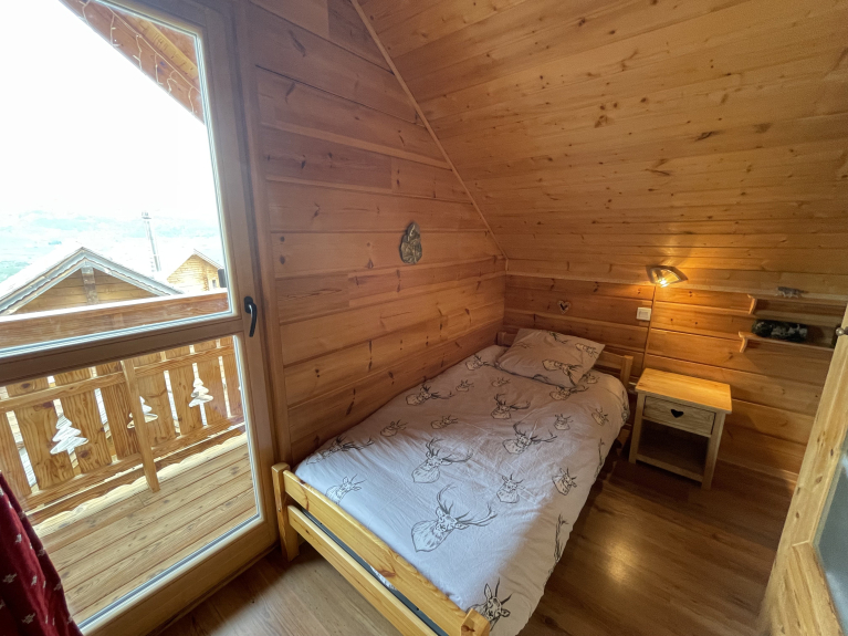 -Une chambre avec 1 lit simple 90 (possibilité d’un second lit) ; donnant sur loggia