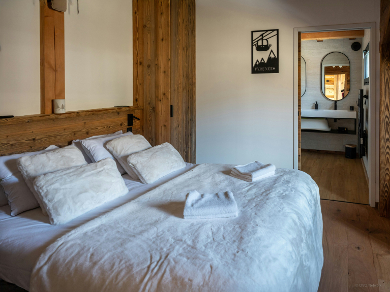 Le luxueux Chalet Càlid peut accueillir jusqu'à 10 personnes (dont 8 adultes), grâce à quatre salles d’eau et quatre chambres. Ces dernières sont modernes, élégantes, et toutes équipées d’une salle de bains privative, offrant confort et intimité.