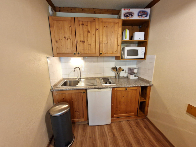 - Coin cuisine avec 2 plaques chauffantes, réfrigérateur, lave vaisselle, micro ondes.