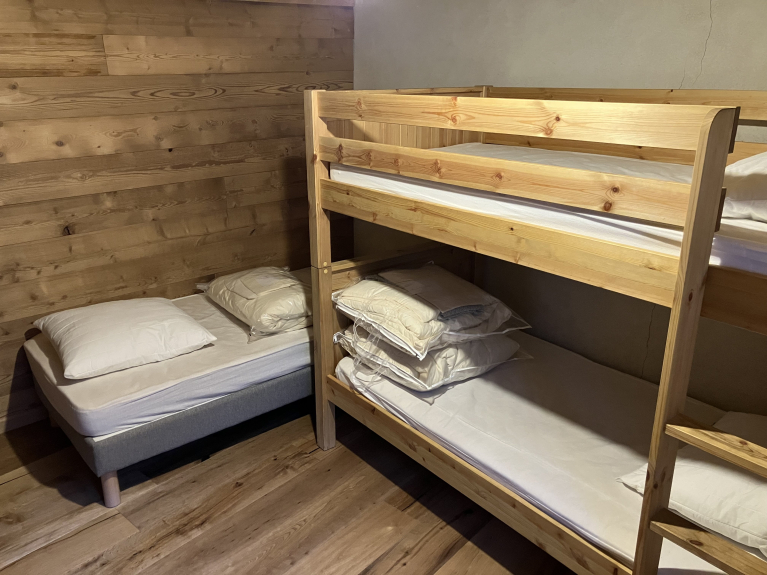 Grand chalet familial de 10 couchages (5 chambres, dont 2 avec lit double et une avec un lit gigogne (1 ou 2 places)), situé dans un charmant village piéton (mais parking à 2 pas) du parc national de la Vanoise, et proche de 3 domaines skiables (Pralognan-la-Vanoise à 10', Paradiski via Chambagny-en-Vanoise à 10', et Courchevel (les 3 Vallées) via Le Praz à 25'), mais également 2 domaines de ski de fond. Le village est l'entrée du parc national de la Vanoise, accessible à pied depuis le chalet.