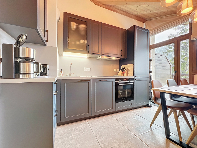 Il comprend également une place de parking couverte privative et une cave pour y stocker votre matériel de ski en hiver ou de randonnée en été.