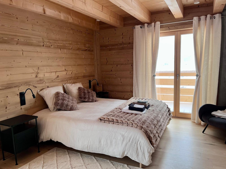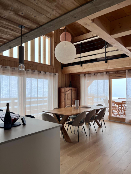 Venez passer vos vacances à la montagne dans un chalet neuf alliant charme alpin et confort moderne, idéalement situé à Praz-sur-Arly, à deux pas des pistes de l'espace Diamant et du centre du village.