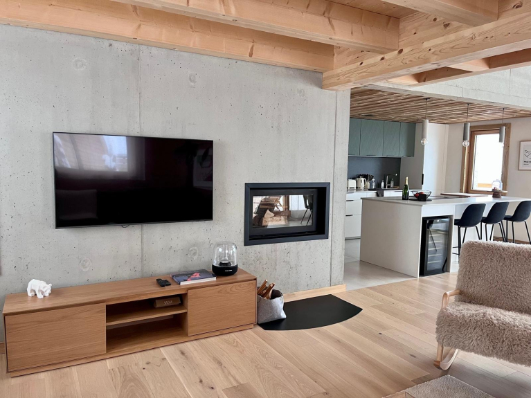- Grand séjour avec cheminée et vue dégagée sur les montagnes