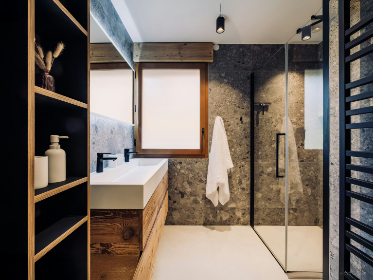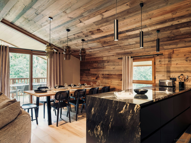 Côté pratique, un local à skis séparé, parfaitement équipé avec lavabo, sèche-chaussures chauffant, lave-linge et sèche-linge, assurera votre confort dès votre retour des pistes.