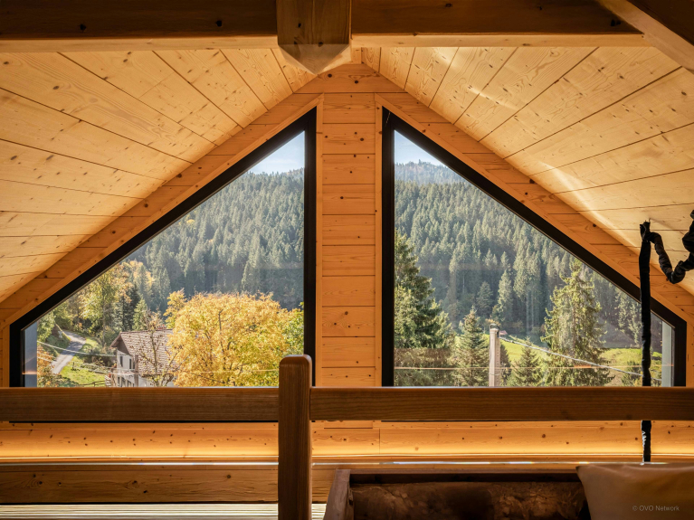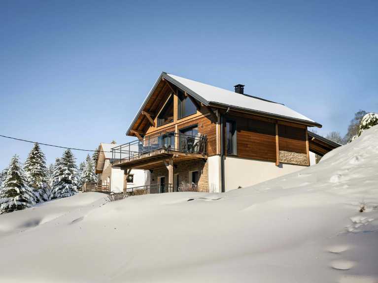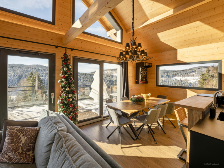 La situation du Chalet L'Ursus sur les hauteurs de Gérardmer offre un panorama dégagé sur les collines et les forêts des Vosges. La propriété, idéale pour six vacanciers, dégage une atmosphère élégante et apaisante sur trois étages.