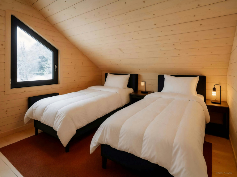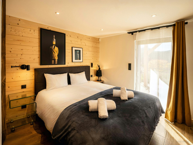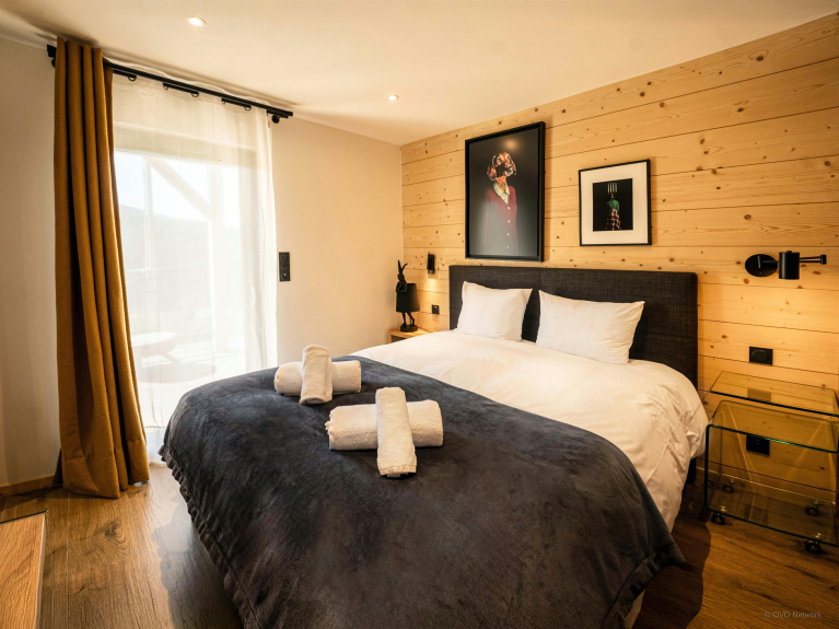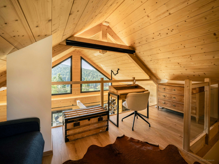 Remarque : deux des couchages sont des canapés-lits situés sur la mezzanine. Deux couchages additionnels sont disponibles grâce au canapé-lit du salon. Le chalet ne dispose pas de barrière d'escalier. Cependant le salon comporte une porte qui sécurise l'accès aux étages. Les fêtes sont strictement interdites dans le chalet.