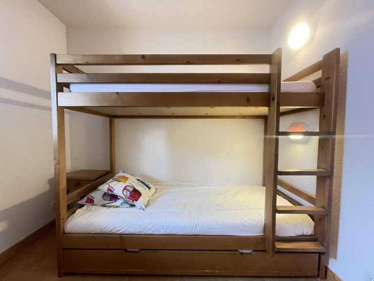 Une première chambre composée d?un lit superposé 2*90 cm + un lit tiroir 1*90 cm