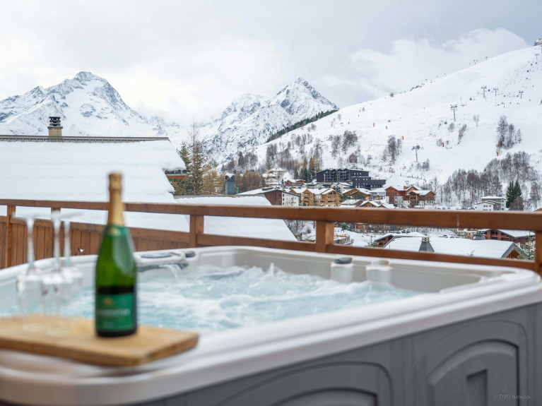 Le Chalet Foxly invite à profiter pleinement de la montagne, puis à rentrer se ressourcer dans son jacuzzi extérieur, avec vue sur le village.