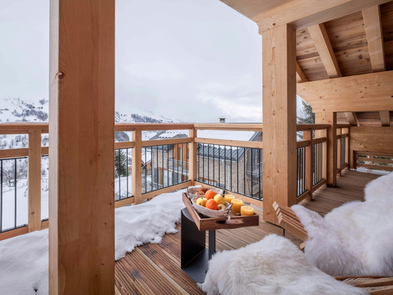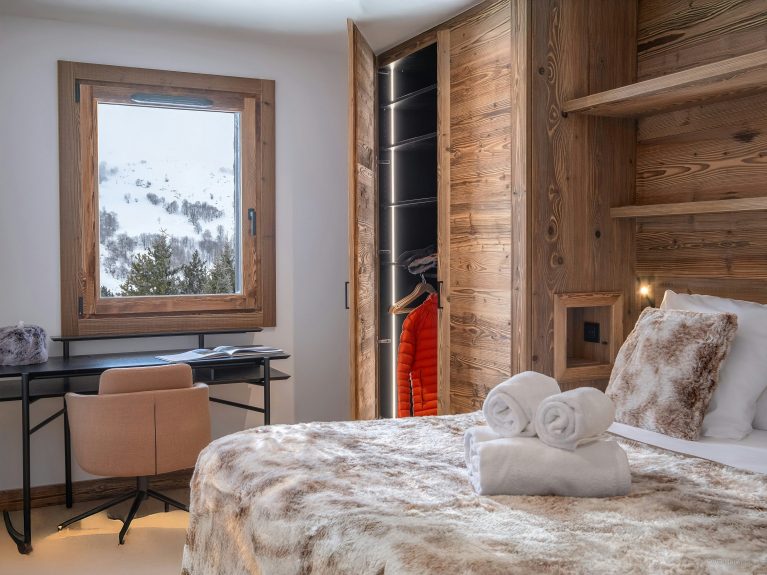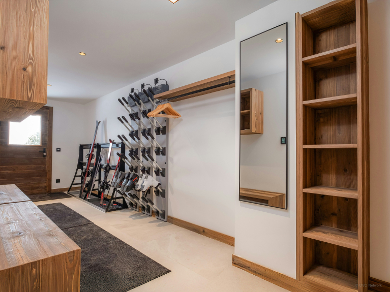 Afin de simplifier le quotidien, le chalet dispose également d’un local à skis avec sèche-chaussures chauffant, d’une buanderie et de plusieurs espaces de stationnement.