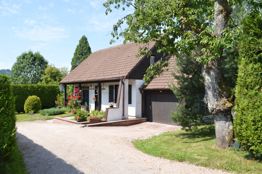 Maison style chalet, très calme de 70 m² avec garage et jardin cloturé, à 400 m des commerces et 100 m d'une très belle forêt (parc naturel) avec vue sur les montagnes. Ballon d'Alsace et Ballon de Servance sommet : 15-30 minutes env. Alsace route du vin et ses merveileux villages env. 1h30. Colmar 80 km. Gérardmer vallée des lacs et 3 stations thermales avec casino Imagerie et Musée d'Epinal, musée de l'électricité, automobile et du chemin de fer à Mulhouse, tous ces lieux à une heure env. chacun.